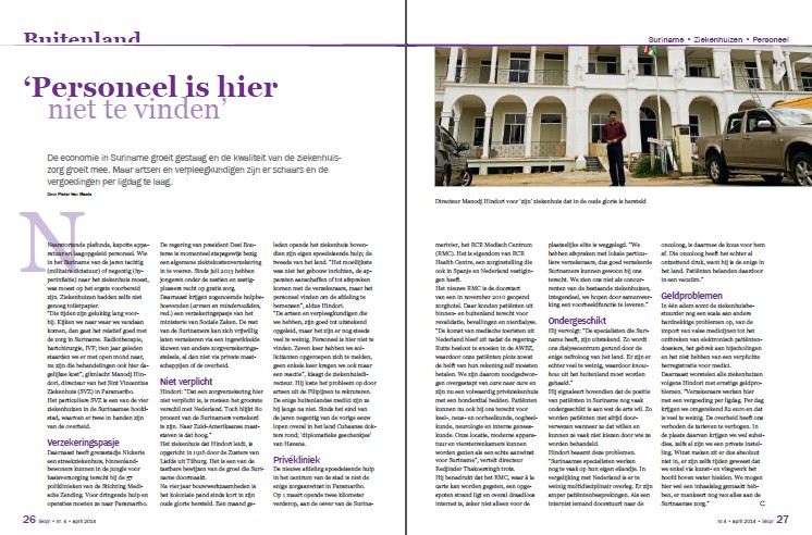 Skipr: ‘Personeel is hier niet te vinden’ door Pieter Van Maele op feb 22, 201415 oktober 2014 Een artikel in Skipr, vakblad voor beslissers in de zorg, over gezondheidszorg in Suriname. Delen: Klik om te delen op X (Opent in een nieuw venster) X Klik om te delen op Facebook (Opent in een nieuw venster) Facebook Vind-ik-leuk Aan het laden... Gerelateerd Berichtnavigatie Vorige: P-Magazine: ‘Op bezoek bij de marihuanaboer’Volgende: Nieuwe Feiten: ‘Surinaamse woorden in Groene Boekje’