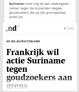Novum: ‘Frankrijk wil actie Suriname’ door Pieter Van Maele op mei 02, 201415 oktober 2014 Een van de vele korte nieuwsberichten die ik regelmatig maak voor persbureau Novum, gepubliceerd in het Nederlands Dagblad van 2 mei 2014. Delen: Klik om te delen op X (Opent in een nieuw venster) X Klik om te delen op Facebook (Opent in een nieuw venster) Facebook Vind-ik-leuk Aan het laden... Gerelateerd Berichtnavigatie Vorige: Parbode: ‘Peperpot en de jagers’Volgende: Trouw: ‘Opgeslokt door het regenwoud’