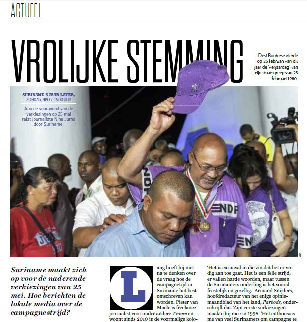 Artikel in de Varagids door Robert Alting over de Surinaamse parlementsverkiezingen van 25 mei 2015, met daarbij een van mijn foto’s.
